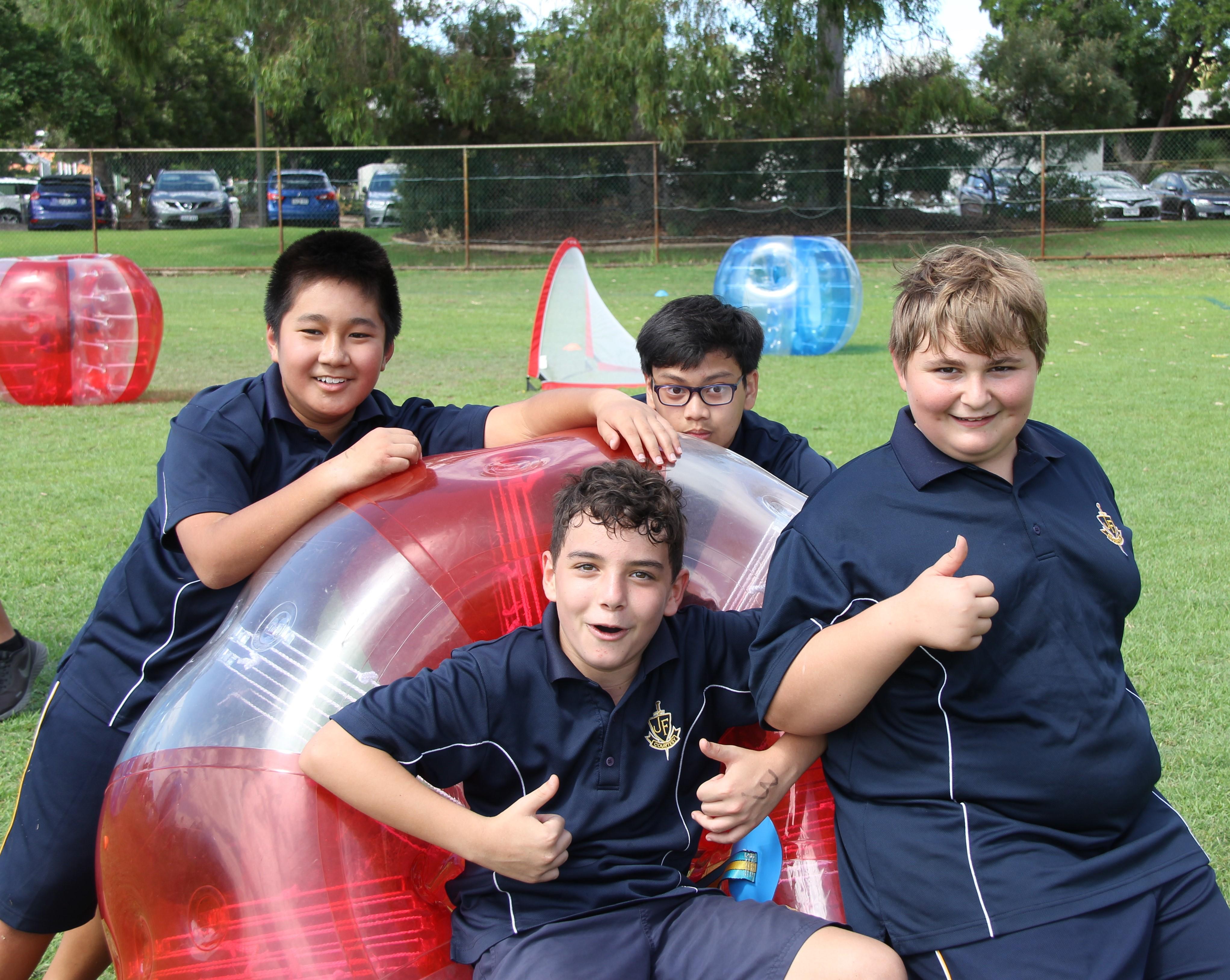 On Friday the 26th February our Year 7 students enjoyed a fun filled activity day to build confidence, develop team building skills, create new friendships and to get to know their Form teachers. The morning session had students participating in a number of different activities such as Bubble Soccer, Catch the Flag which students have been developing in their Physical Education classes, Silent Disco and "Minute to Win it". It was fantastic to see the students participating with big smiles on their faces and supporting one another.