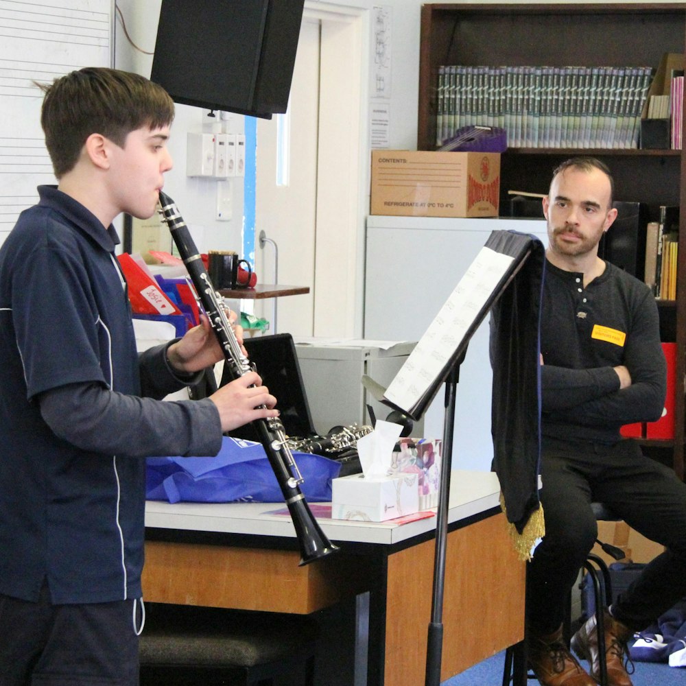 From here two students, Renata Riquelme and Tyler Deakin-Thomas, performed a piece each for their fellow pupils and Dr Smith. Dr Smith says that we tend to focus on pitch and rhythm when practising a piece, but ultimately a musician needs to make the instrument sing. He explained that you need fuel for your instrument, whatever that means for your particular device - for example air for wind instruments.