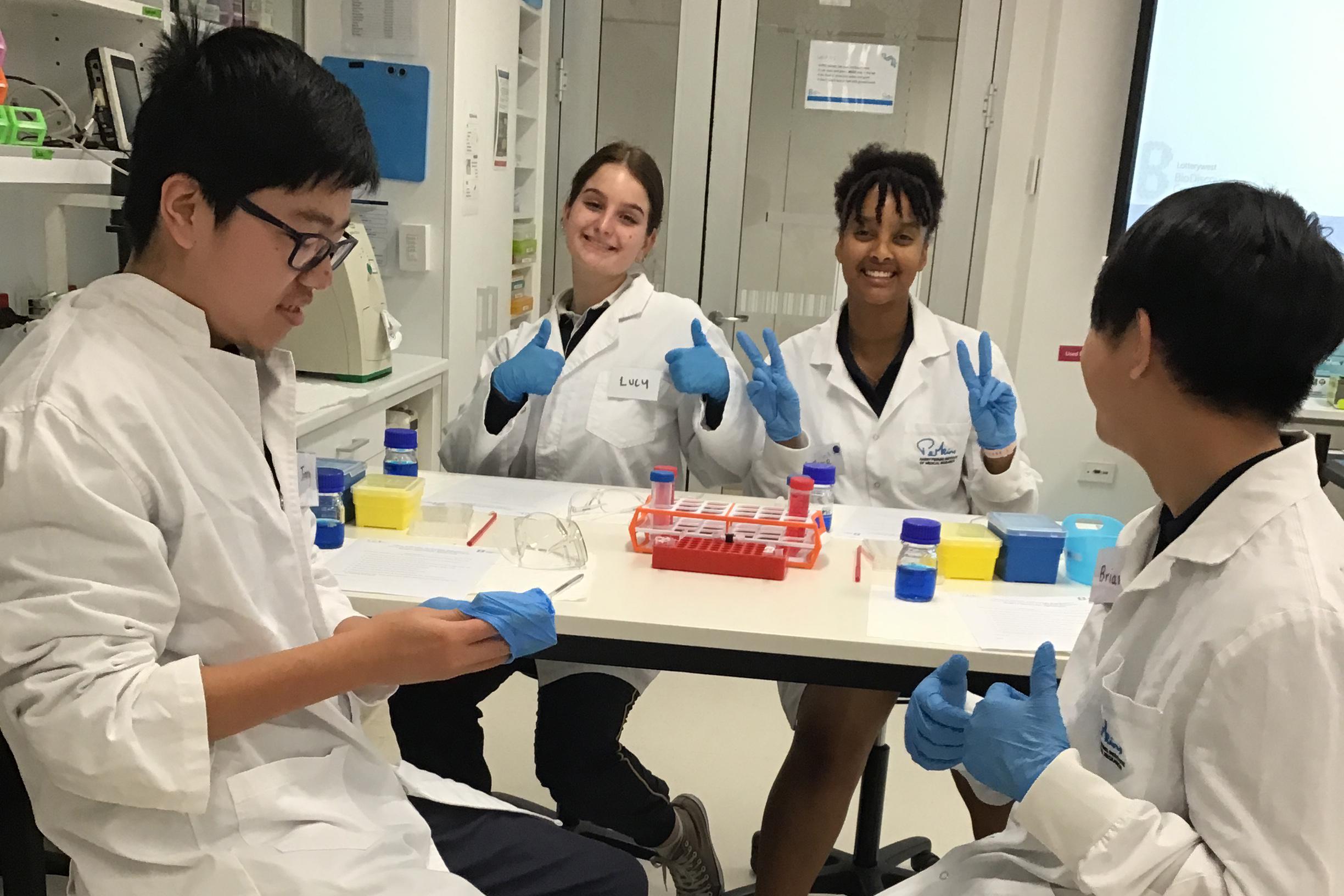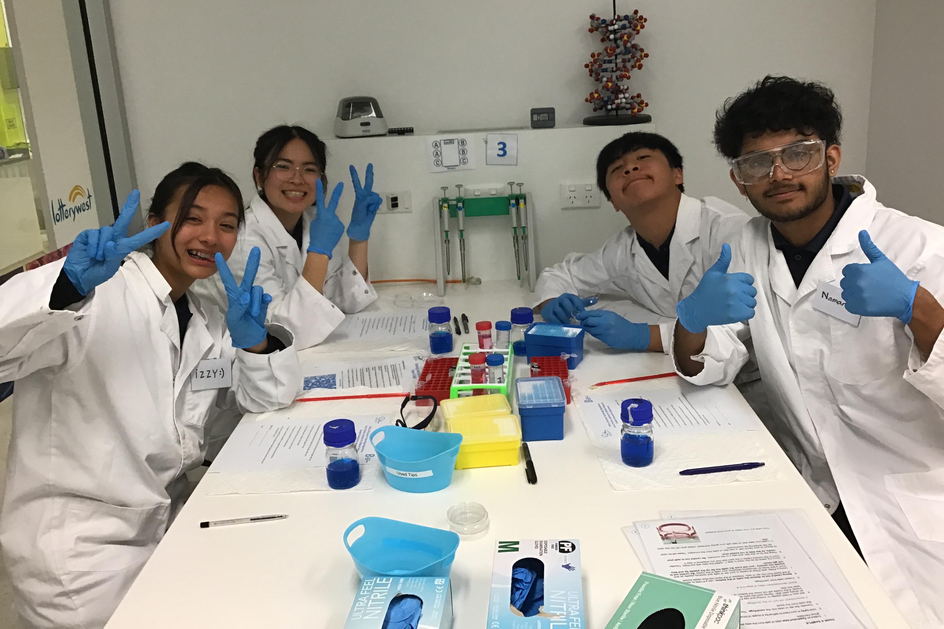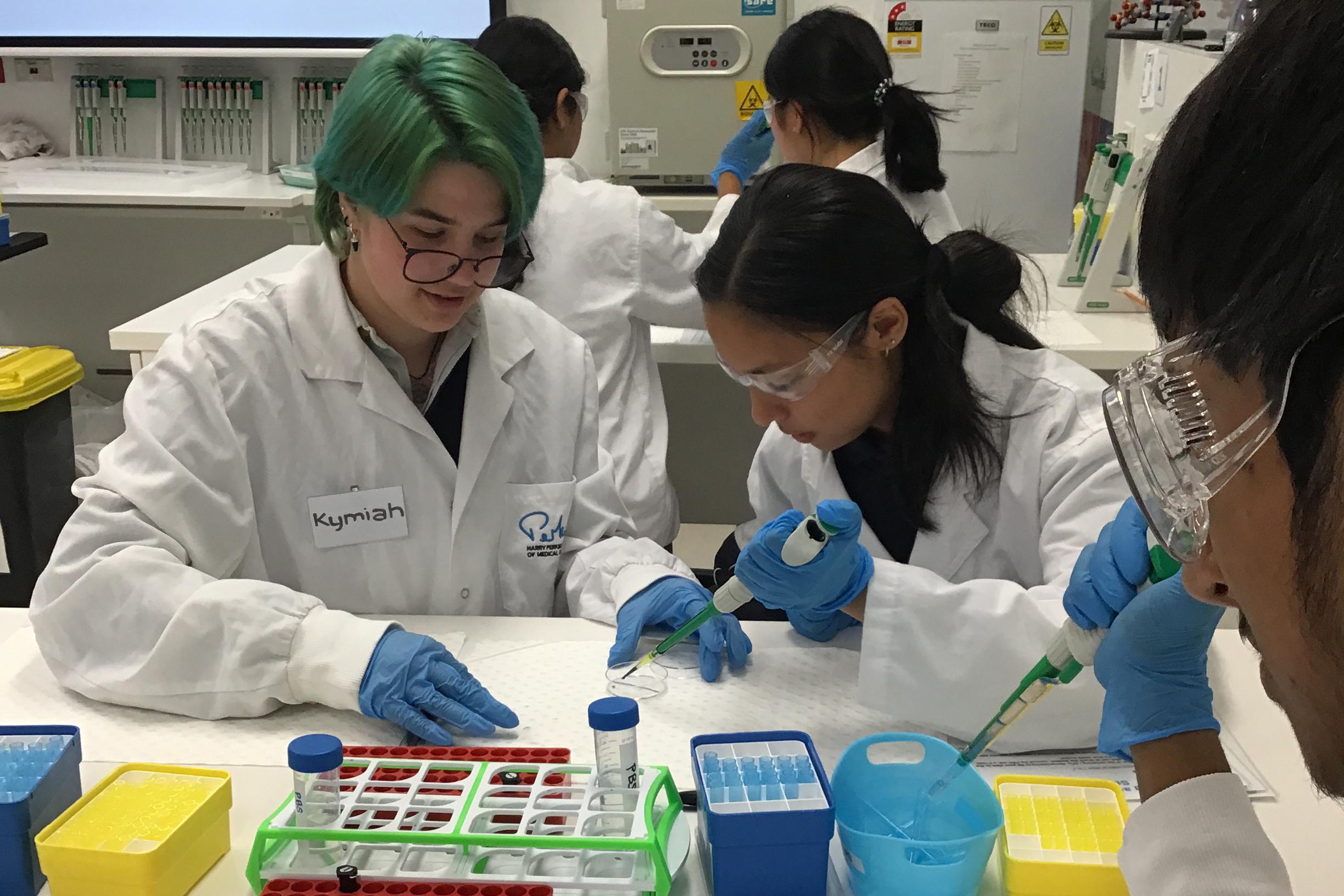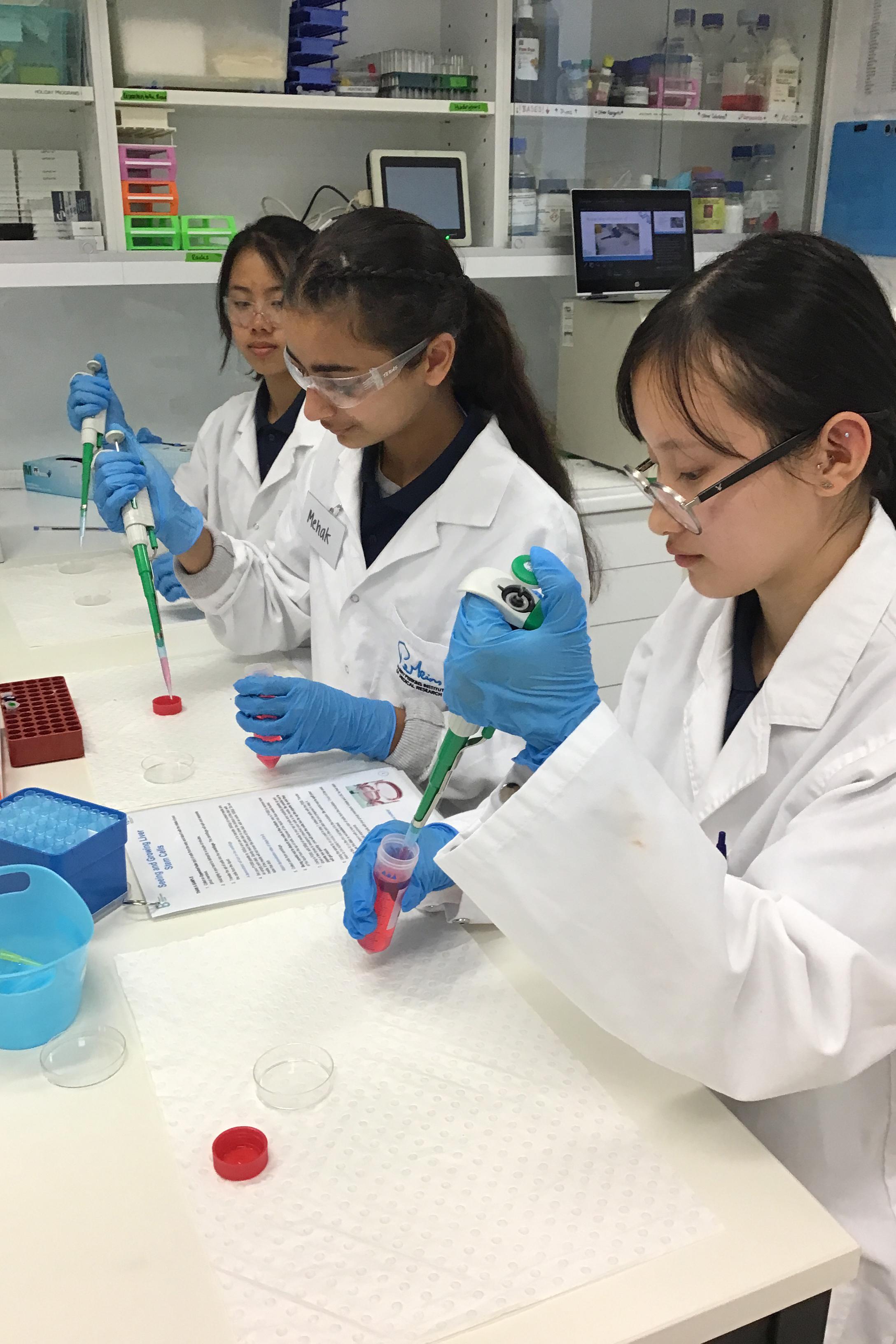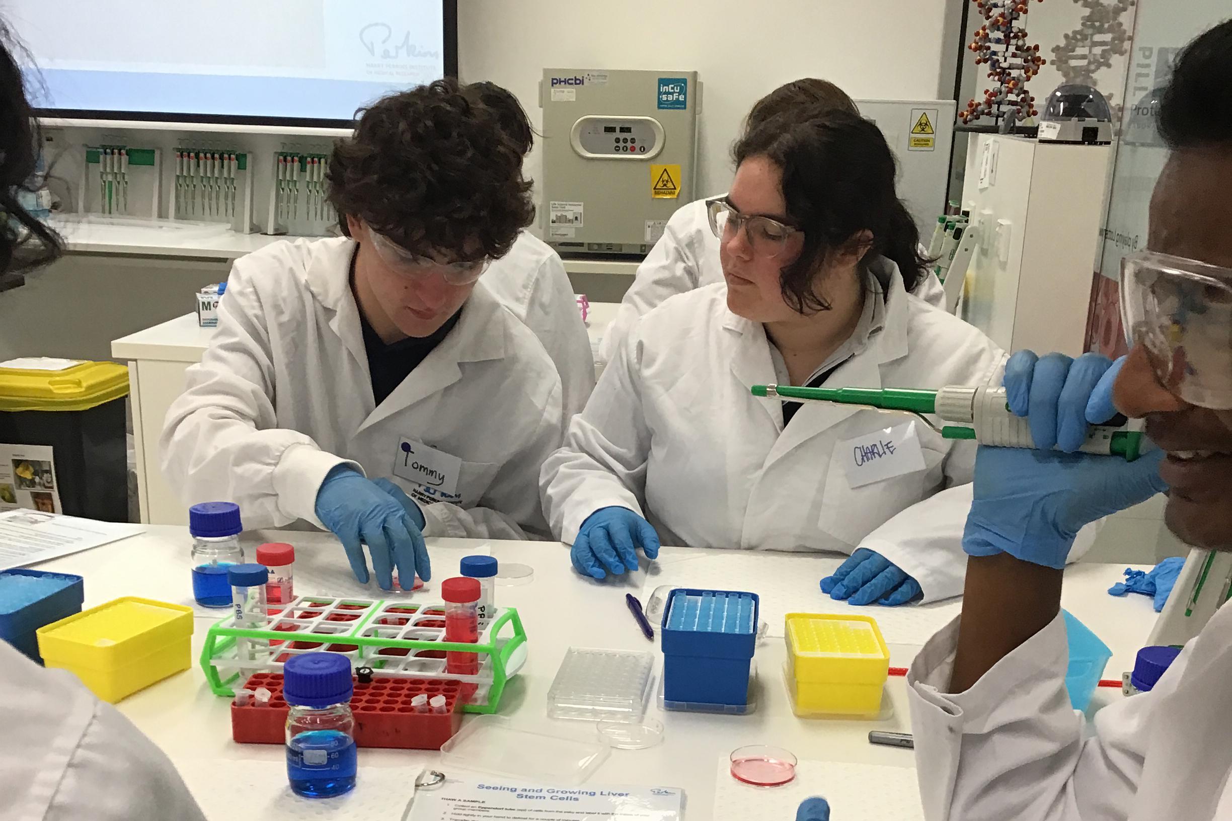 The students worked and engaged with research scientists at Harry Perkins who guided them through isolating liver stem cells and growing organoids in a PC2 lab. Students took ‘CELL-FIES’ with their cell cultures and played the Stem Cell Differentiation game.