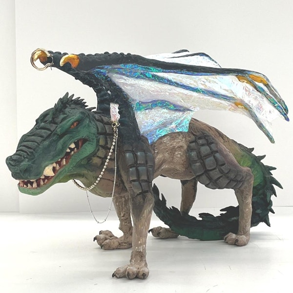 How incredible is this creature! Year 12 General Art student Tara Tyrrell-Allan designed this hybrid as part of her Australian Hybrid Sculpture project. Students were challenged to combine features from an Australian insect, reptile, and native animal to create a unique mythical creature inspired by our country's remarkable wildlife and landscapes. Tara fused elements of a crocodile, a prehistoric Australian Mammal (a thylacine), and a dragonfly, bringing her design to life using gourmet cloth mâché, wire, newspaper, and iridescent cellophane wings. A brilliant blend of creativity, craftspersonship, and Australian inspiration.